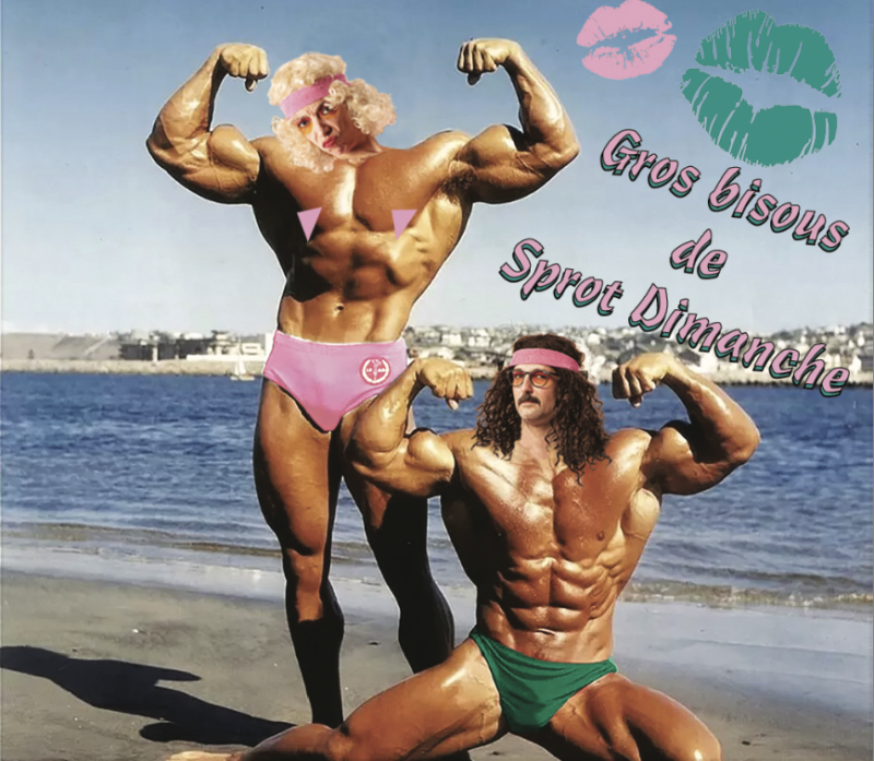 Le sport vous fatigue, vous rend irritable, vous déprime peut-être? Ne cherchez plus, le sprot* est fait pour vous. Professeure Postérieur et Frédéric Choupi unissent leur énergie et leur humeur pour vous proposer la cérémonie d’aérobic sauvage et grotesque Une seule séance suffit, dont l’album est sorti en mars 2025. L’ambiance est tonique et sympathique, les mouvements sont calibrés sur l’enthousiasmante musique de Frédéric Choupi. Venez joyeusement célébrer le nerf secret qui relie le postérieur aux zygomatiques, Sprot Dimanche vous promet de faire rimer sueur et bonne humeur.
