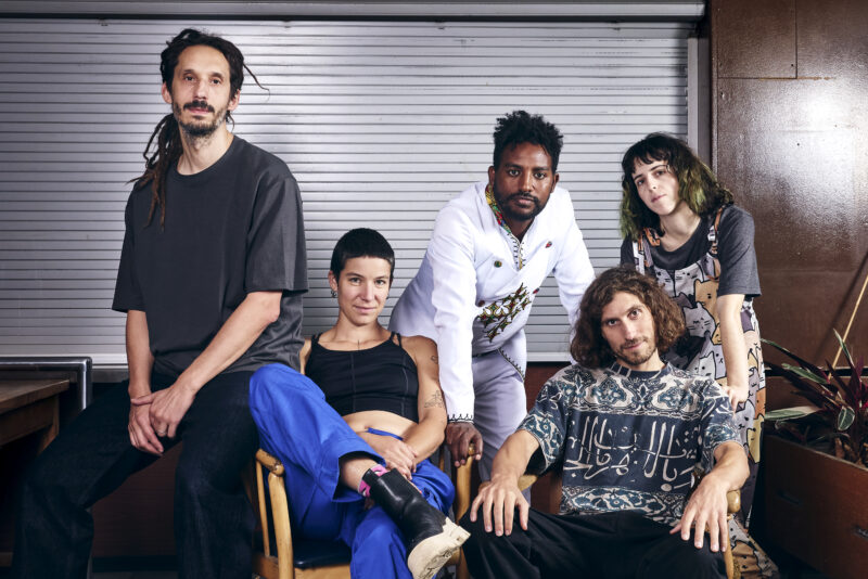 Toujours basé à Genève, le groupe poursuit son chemin avec une nouvelle formation, en continuant de susciter le dialogue entre les traditions de la Corne de l’Afrique et les expérimentations les plus débridées. Les riffs de krar de Samuel Ades Tesfagergsh, la basse sculpturale de Louise Knobil, les percussions tendues de Cyril Bondi, l’électronique brute d’Emma Souharce et le banjo modifié de Cyril Yeterian tissent une trame sonore dense et collective, pleine de virages serrés et de sursauts rythmiques.
