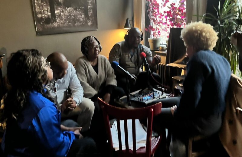 Membres du collectif Troubled Archives : Antje Van Wichelen, Rokia Bamba, Brenda Bikoko, Peggy Pierrot et Loes Jacobs, actuellement en résidence à BNA-BBOT.